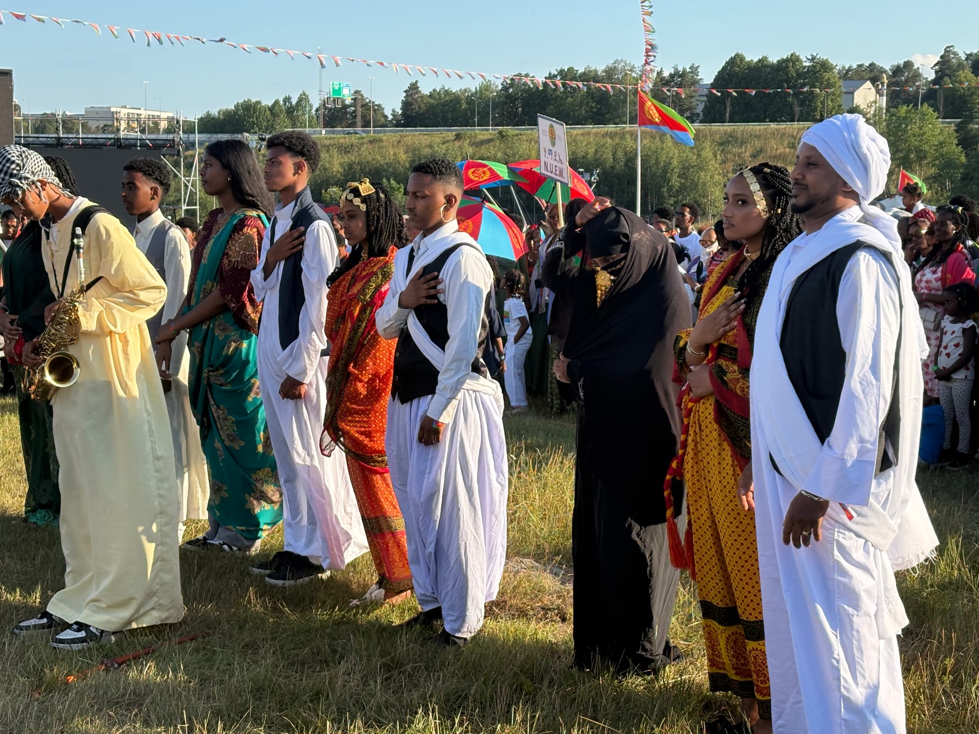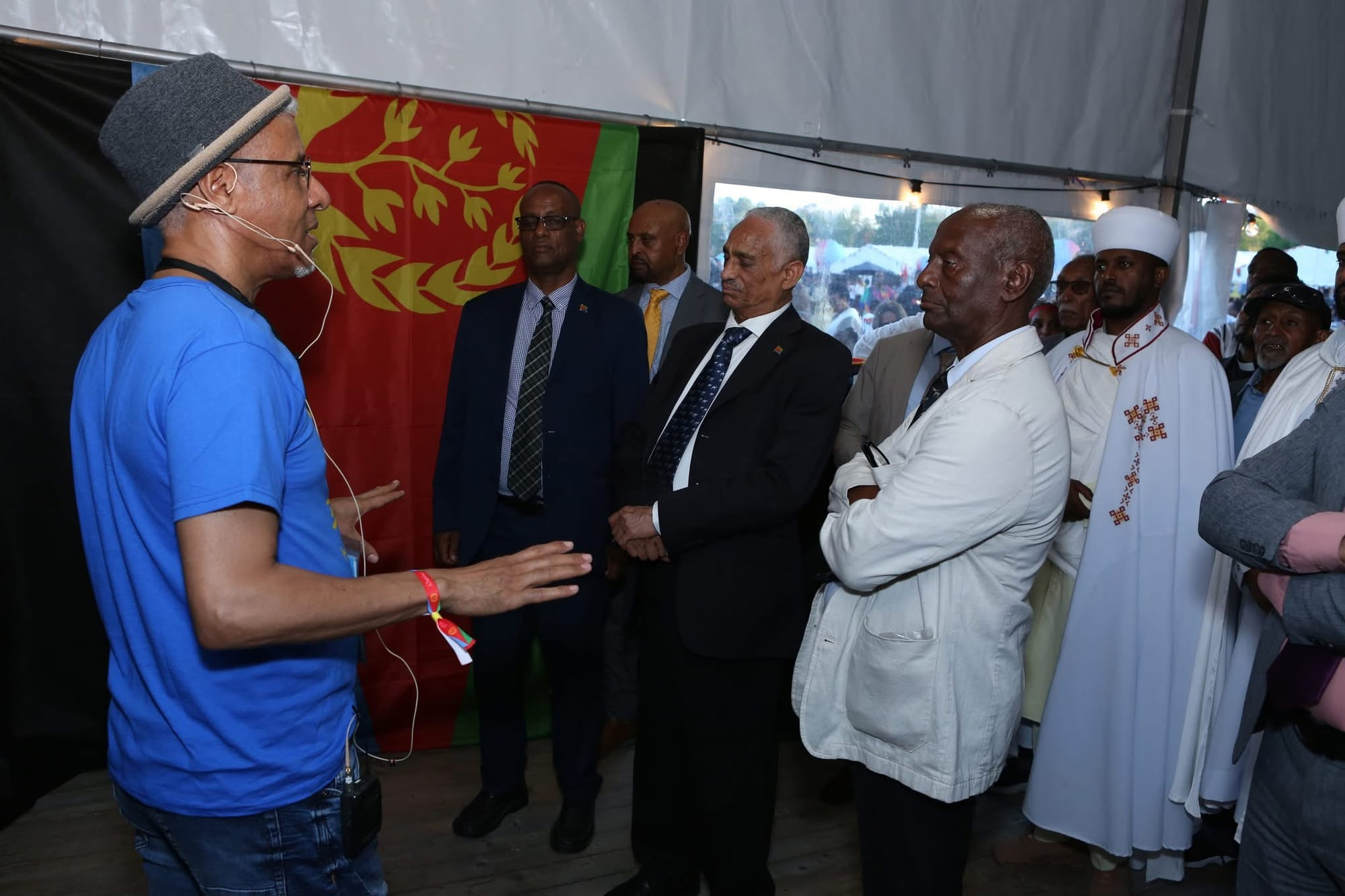The opening ceremony on Thursday set the tone for the entire event. Just minutes before it began, an announcement was made over the loudspeaker across the massive campground—which hosted tens of thousands of people. I had the privilege of accompanying Ambassador Fesshazion Pietros, the Chargé d’Affaires and Embassy staff of Eritrea in Sweden, alongside religious leaders including priests and sheikhs, as we gathered for the flag-raising ceremony.
